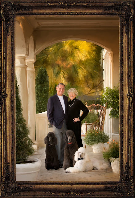 If you are a dog lover like I am, you will love these two portraits! These three are the greatest dogs (Savannah, Chardonnay and Elvis) I have seen in a long while and so very obedient. Oh yes, the people aren’t too bad either…actually they are some of the greatest people I have met as well. Jeanne and Phillip Farmer are so generous to our community and I call it an honor to have had the pleasure of working with them, creating beautiful paintings to grace their lovely home.